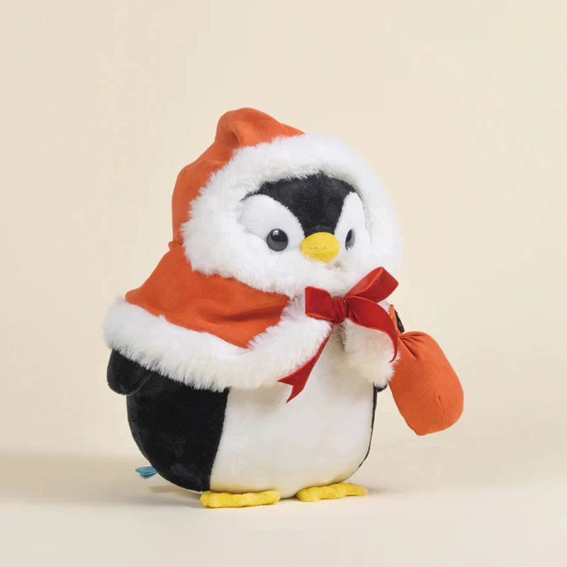 Meet Pengi, your delightful penguin plush, ready to bring the spirit of Christmas plush to life! Pengi is not just any penguin stuffed animal—it’s your adorable holiday companion, dressed in a fuzzy red and white hoodie that’s perfectly complemented by a plush velvet bow tie. This festive season, Pengi is stepping into the spotlight as Santa’s little helper, complete with a tiny bag filled with extra Christmas magic.