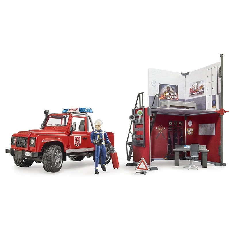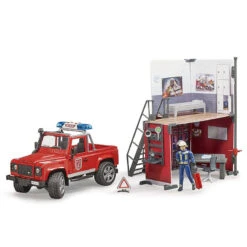 Bruder 62701 Bworld Fire Station w/ Land Rover Defender and Fireman