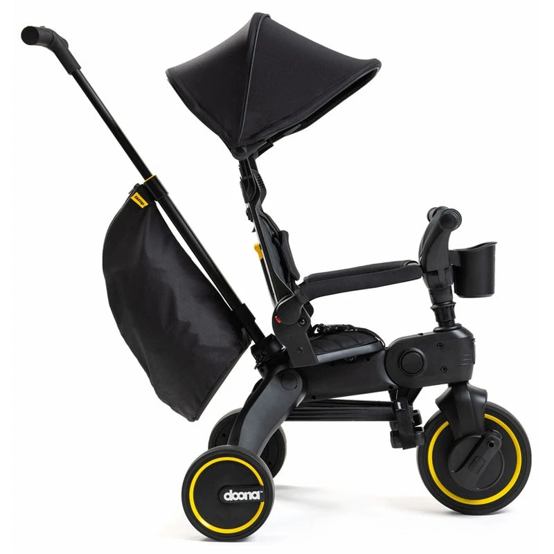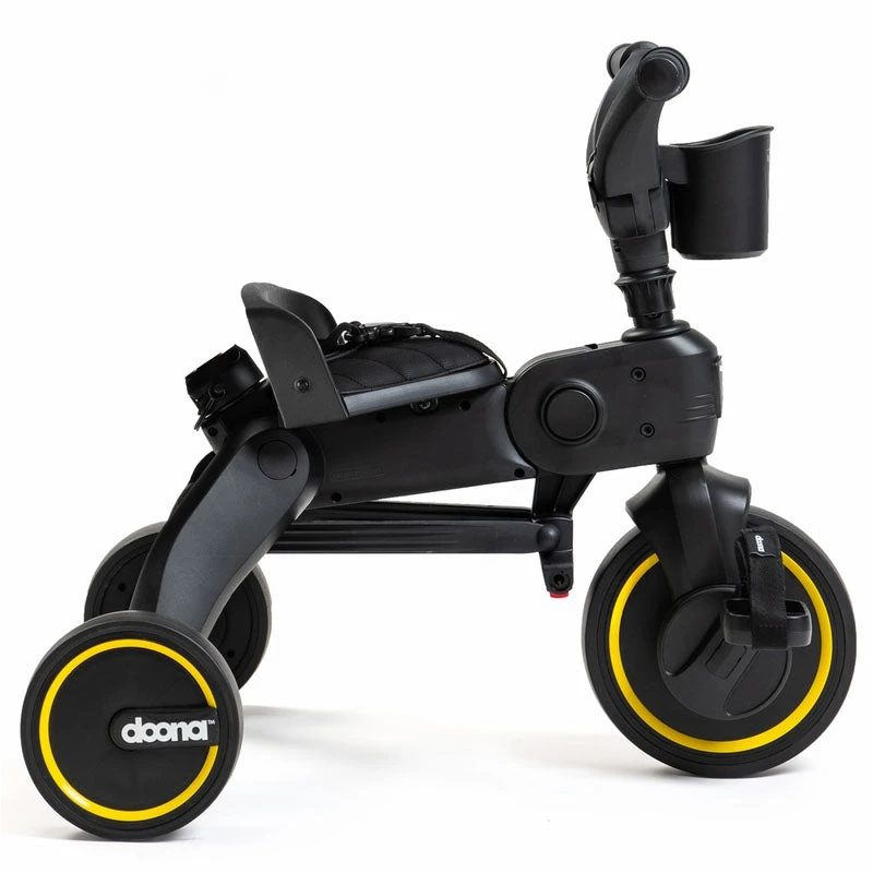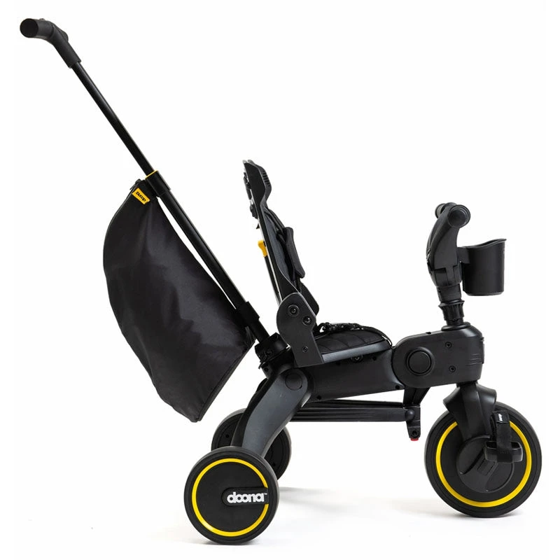 The Liki Midnight offers the full experience and more. In addition to the S5 features, this edition includes high end black faux-leather handles and armrest covers. Liki’s functionality and innovative design, make for an uncompromising and safe ride. With its unique and patented small-fold mechanism, the ingenious trike simply folds and unfolds at the click of a button. It comes fully assembled, ready to use, straight out of the box. Liki allows you to travel comfortably with your child as it fits easily in the boot of your car or the airplane’s overhead bin. Made from high grades of fiber-reinforced polymers, rust-free aluminum, and high-durability wheels, Liki innovatively brings Doona’s infant car seat and stroller safety to the trike market.