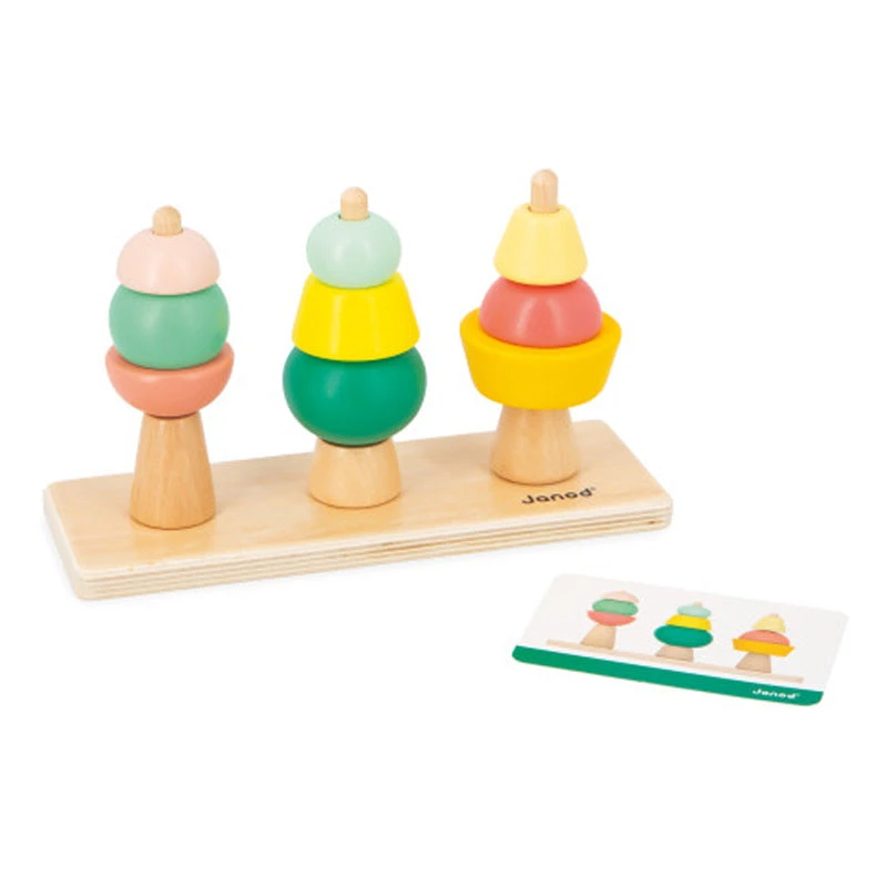 First off is an abacus which is an ideal tool for helping children recreate constructions and understand the concept of size, thanks to the 6 double-sided model cards provided. The 3 trees are each made up of 4 pieces; this educational game requires observation and logic.