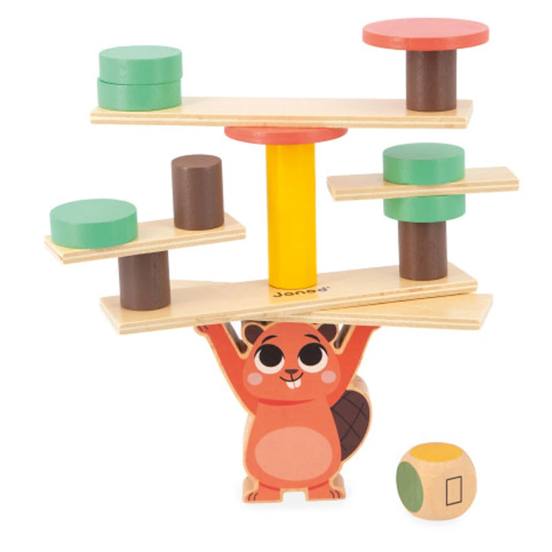 A “Super Beaver” wooden balance game is also included for little ones: our adorable wooden beaver needs help transporting all the materials to the dam! This wooden skill game comprises 26 pieces and can be played in 2 different ways, alone or with others: choosing whether or not to rely on the die to indicate the coloured piece that needs to be stacked next. It involves thinking and using motor skills to avoid dropping everything!