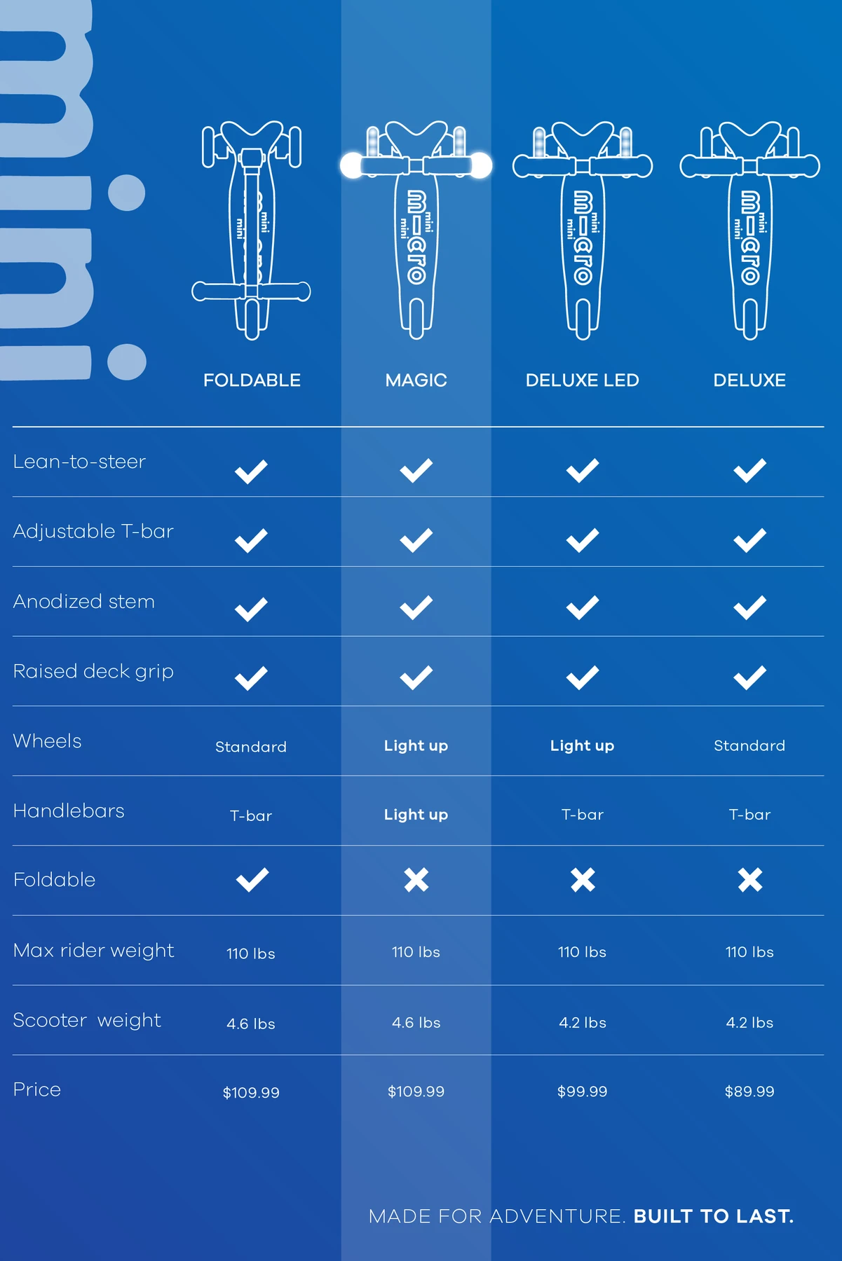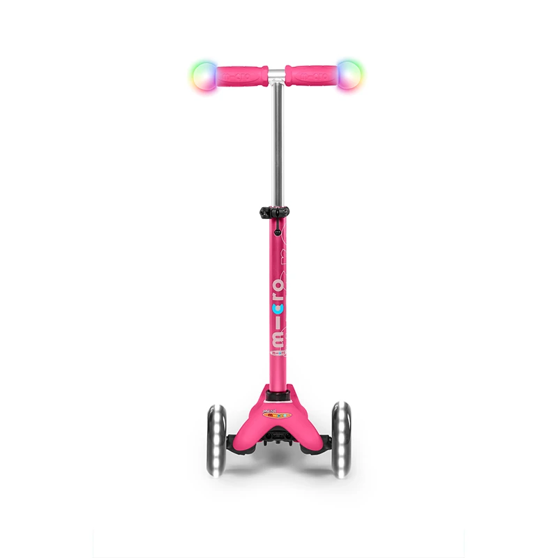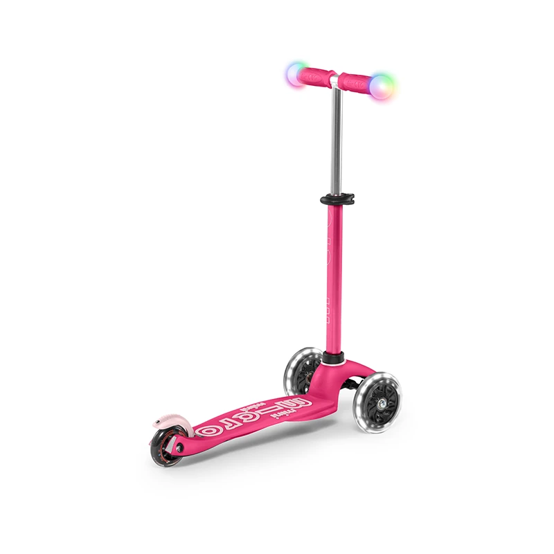 - Featuring light-up handlebars and light-up LED wheels, the 3-wheeled Mini Deluxe Magic scooter utilizes a Lean-To-Steer design, offering a stable ride that supports toddlers and small children as they master balance and coordination.