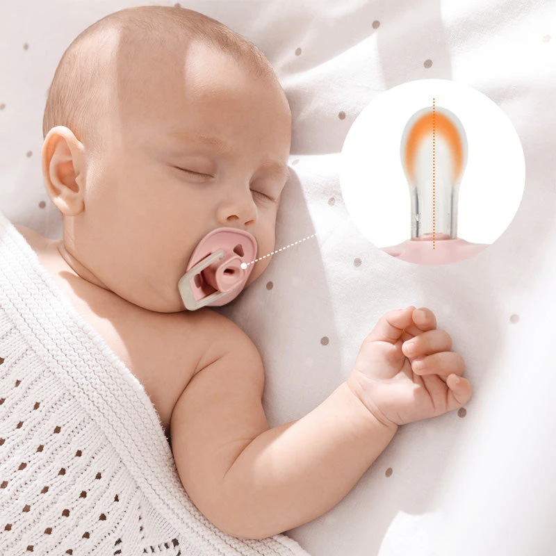 The unique shape of the pacifier and the angled handle allow both the baby and the parents to take the pacifier comfortably. The locking knob prevents it from moving freely and making unnecessary noise.
