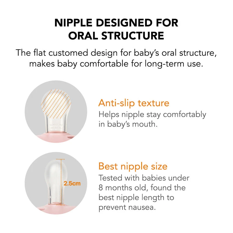 Even 2 air holes allow air to circulate and prevent skin irritation. The ventilated design of the teat helps to reduce water retention and helps to dry faster.
