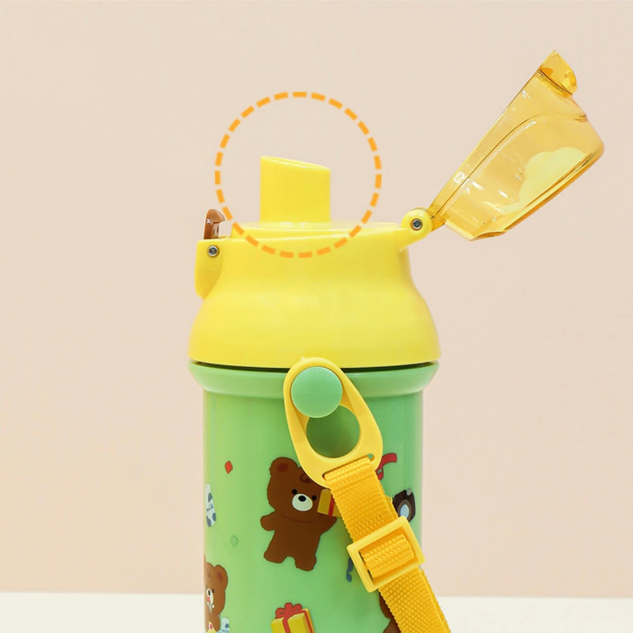 One-Touch Shoulder Strap Water Bottle -Brown Bear