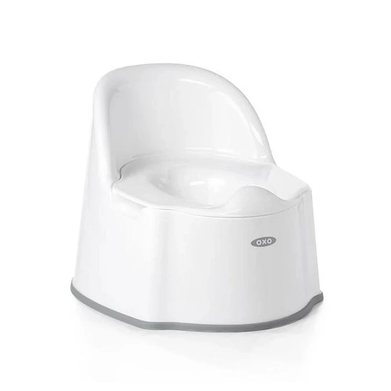 Handle any potty situation with the OXO Potty Chair. It is the perfect size and features side handles for removing the inner bowl during cleanings. A splash guard minimizes messes while the high backrest supports your little one as they go potty.