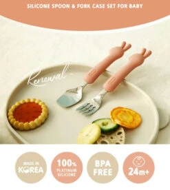 Soft Silicone Handle Stainless Steel Spoon & Fork Set (3+ Years Old)