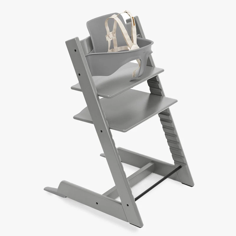 - 1 Tripp Trapp Chair, 1 Tripp Trapp Baby set² with 5-point harness and 1 Extended Gliders.