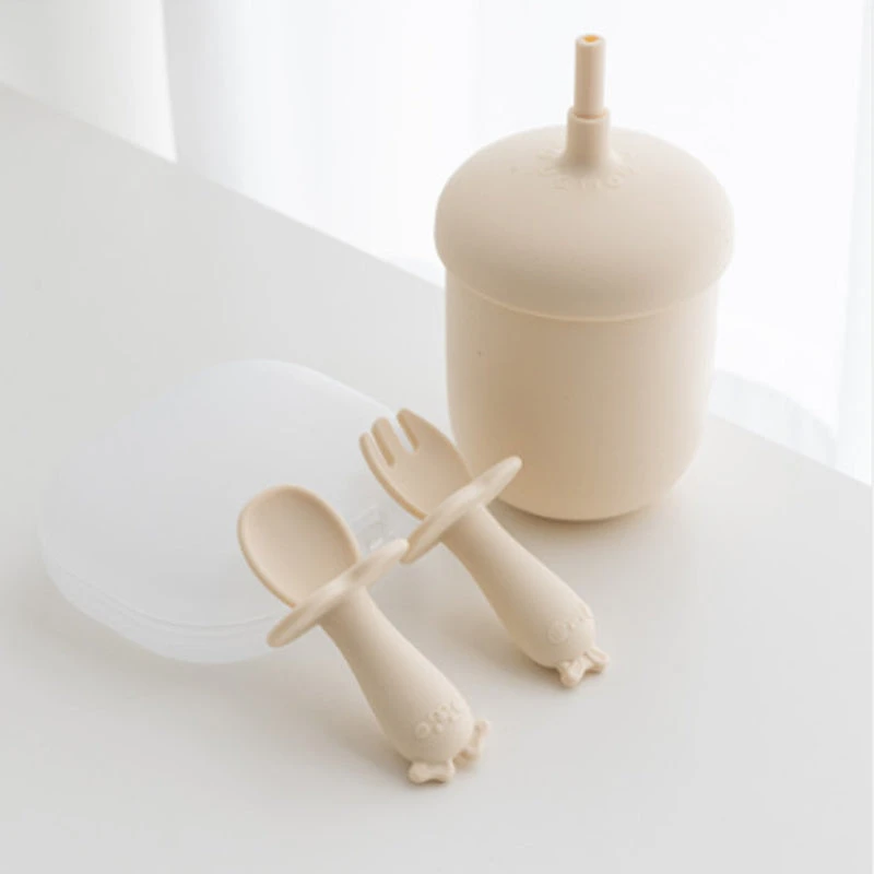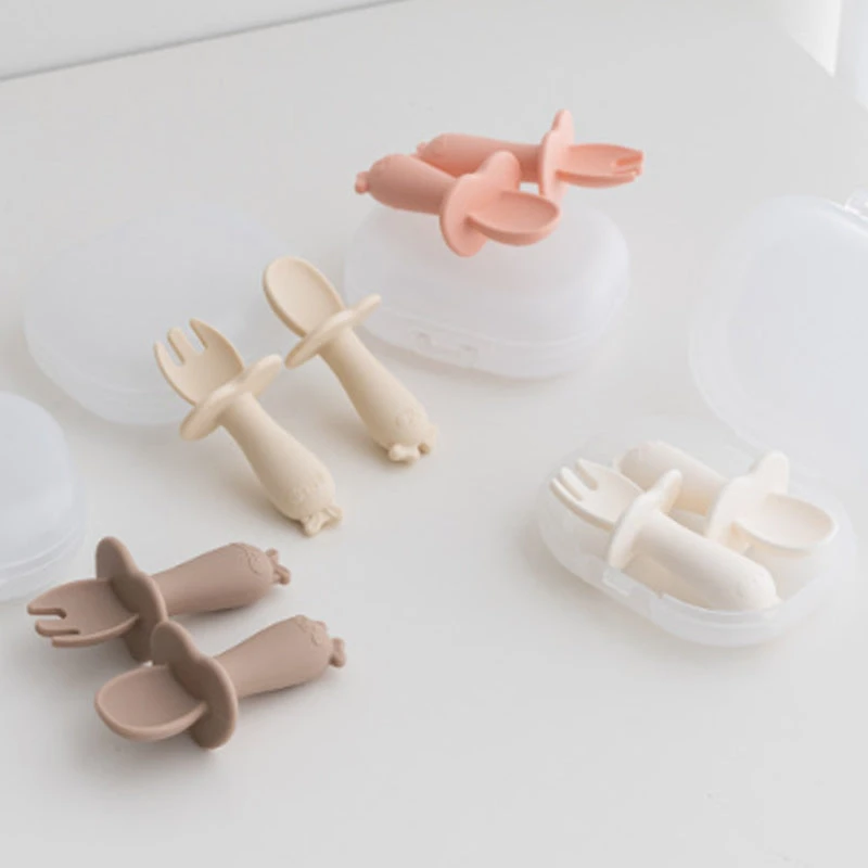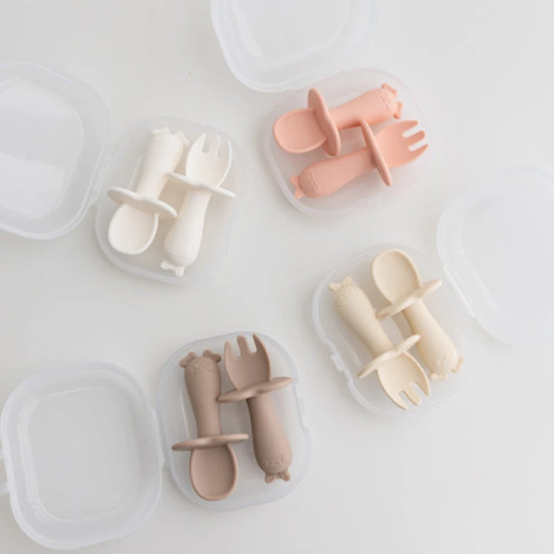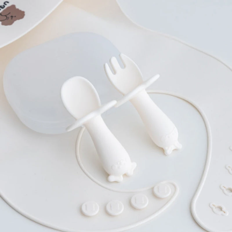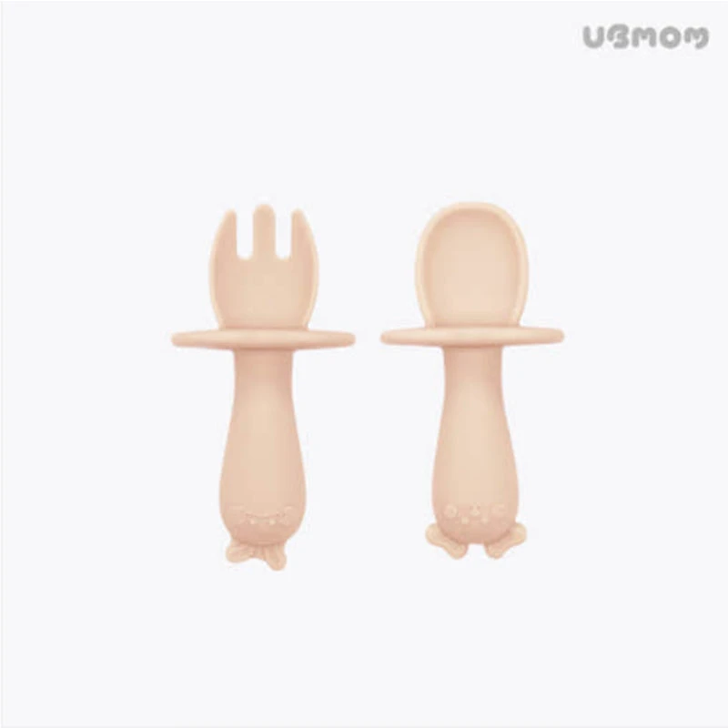 UBMOM Silicone Self Feeding Spoon & Fork with Case